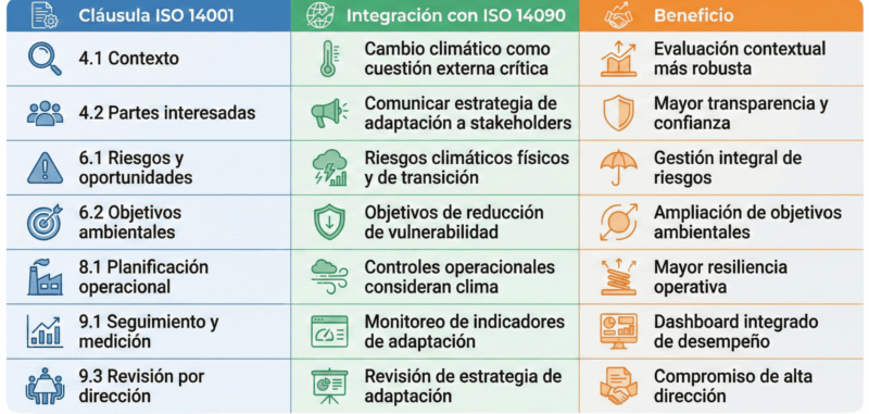 Para organizaciones certificadas en ISO 14001:2015, ISO 14090 se integra naturalmente: